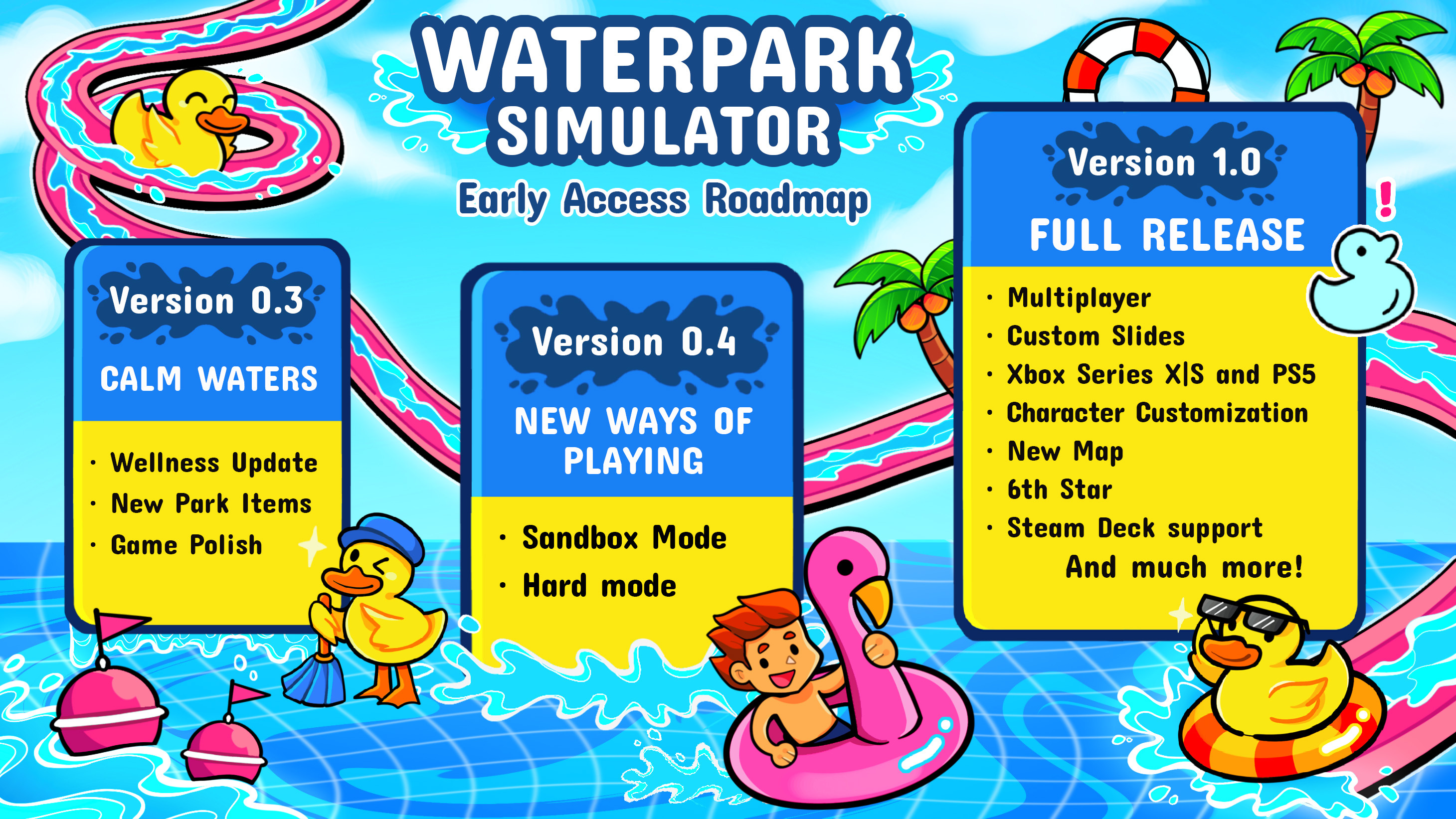 Hi everyone! To say that we are working incredibly hard behind the scenes to try and make Waterpark Simulator as good as it can possibly be is a massive understatement, and today we are excited to share some really exciting news with you about our journey to that big 1.0 release.
